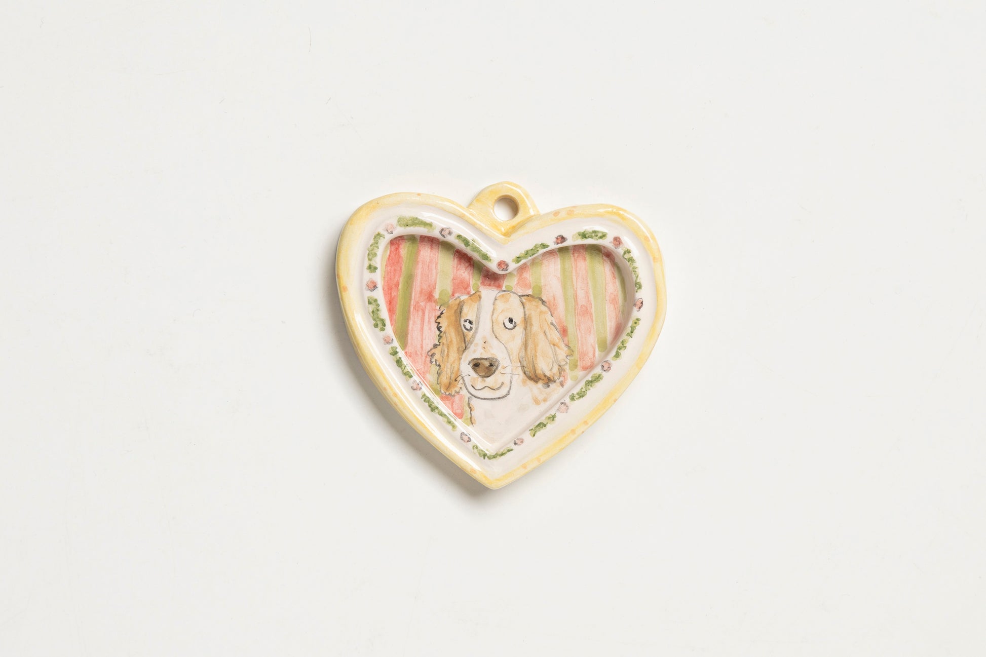 These ceramics, inspired by vintage paintings, are designed to be hung and bring a cheerful, personal touch to your walls. Each piece is hand-painted with a subject of your choice, and the border color can be fully customized to match your style.