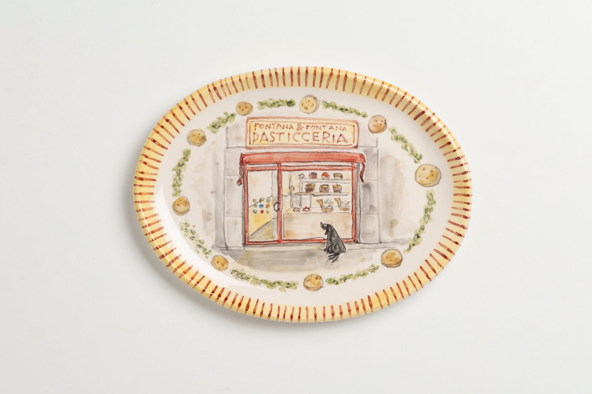 The central scene is hand-painted with a subject of your choice—you can send us a photo if it’s a real-life scene, or describe it if it’s an imaginary one. The border color can also be customized to suit your preferences. These are decorative plates that can be used for serving food, but they should be handled with care. The small plate is perfect for multiple uses: at the table, as a catchall by the entrance or on a nightstand, or as a soap dish.